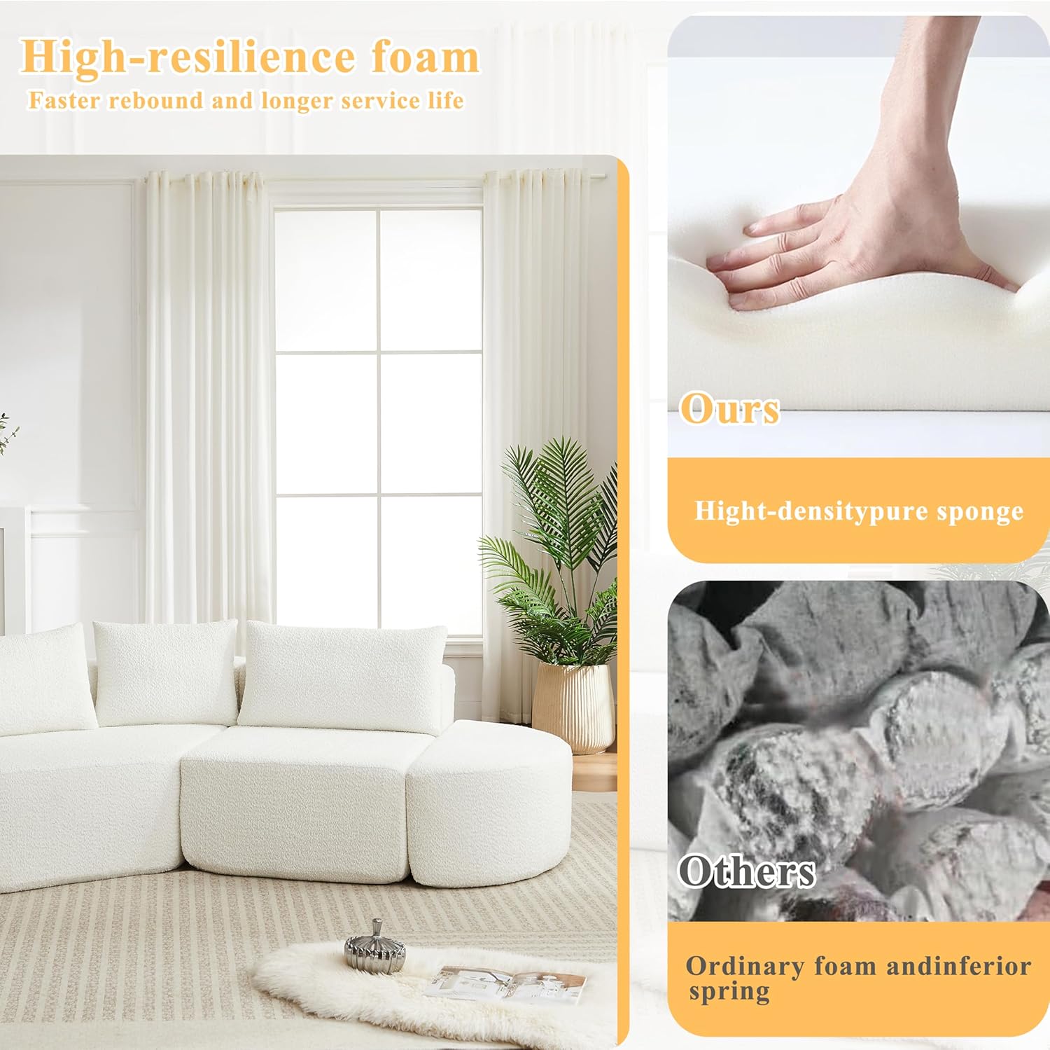 106.3-inch V-shaped modular sofa set in chenille fabric, featuring three throw pillows and two curved ottomans, perfectly suited for living rooms, bedrooms, and offices.