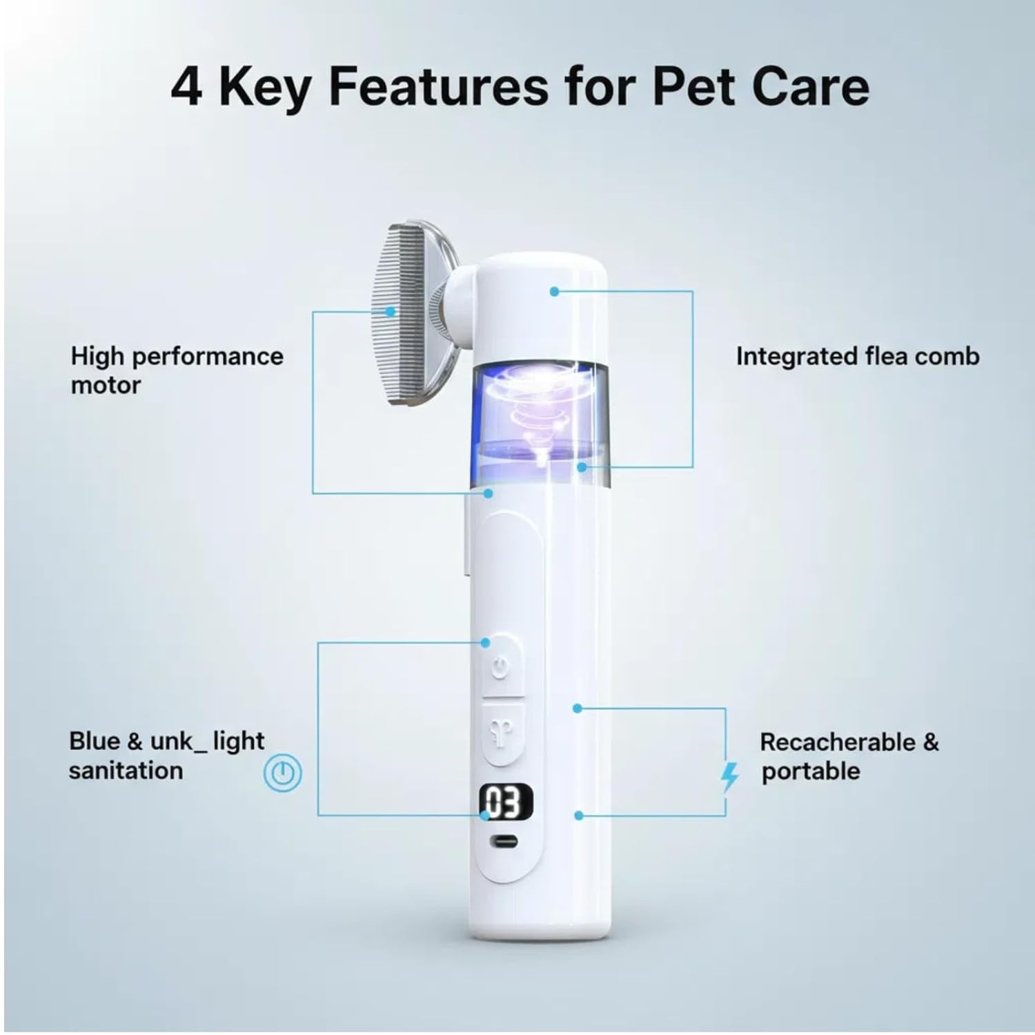 Revolutionize your pet care routine with our 2-in-1 Electric Pet Grooming Brush! This innovative, USB-rechargeable tool is your all-in-one solution for a happier, healthier pet. It effortlessly functions as a powerful flea comb and a gentle detangling brush, loose hair, and stubborn mats in one smooth, comfortable session. Say goodbye to harsh chemicals and tedious manual brushing. The 360-degree rotating glide through fur, providing a soothing massage that pets adore, while the strong suction captures fleas and debris directly into the easy-empty dustbin. Perfect for all coat types—long, short, curly, or straight—this is the ultimate dog brush for long haired dogs and a gentle cat brush for long haired cats. Lightweight, quiet, and incredibly easy to use, it’s the perfect grooming partner for at-home care, travel, or quick touch-ups before a visit to the park. Transform grooming from a chore into a bonding experience and give your pet the salon-quality treatment they deserve!