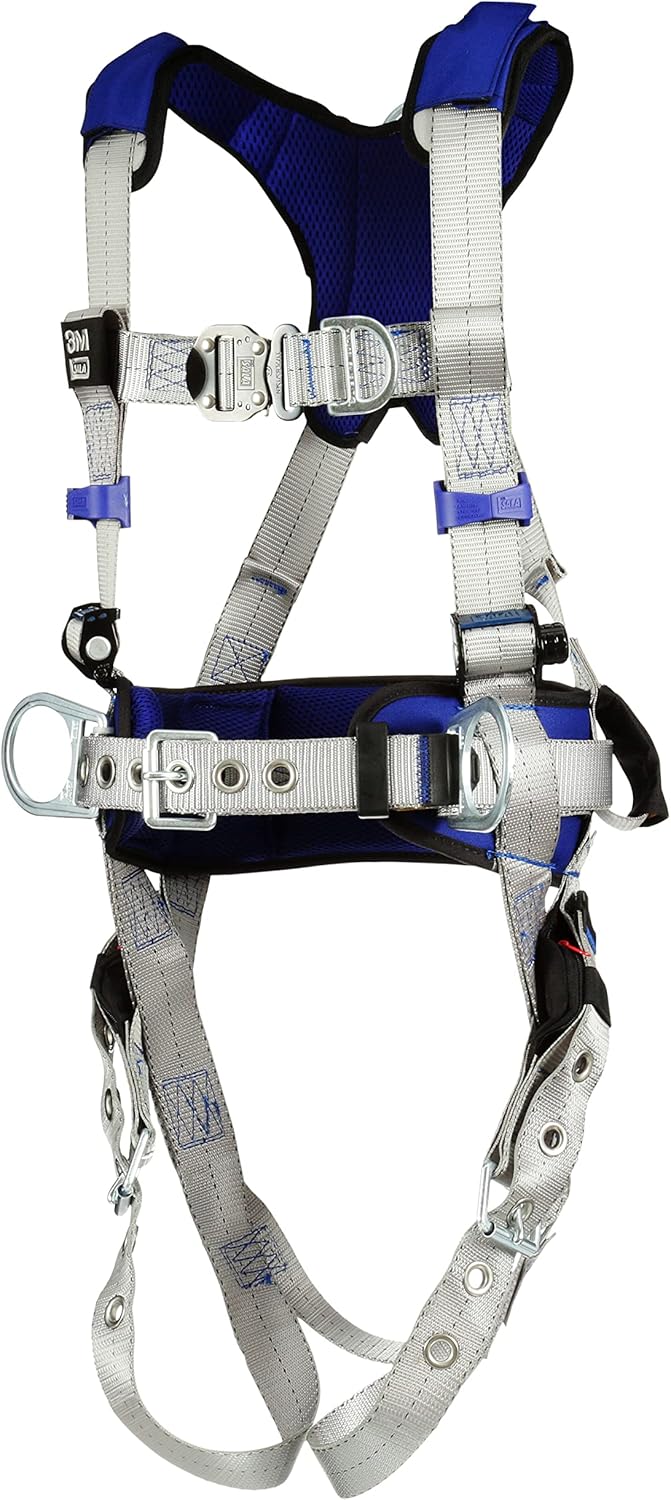 The 3M DBI-SALA ExoFit X100 is designed with high-quality components that have been developed to enhance the harnesses safety and comfort while working at height on your job site. The X100 comfort harness is built with 6,000lb polyester webbing, nylon/polyester hybrid comfort padding and robust alloy steel hardware. The anti-slide back D-ring plate design helps reduce dorsal D-ring slide and enables a convenient adapter location to connect personal SRLs. Select configurations are also available with exclusive weight distribution systems to help reduce shoulder strain and fatigue.