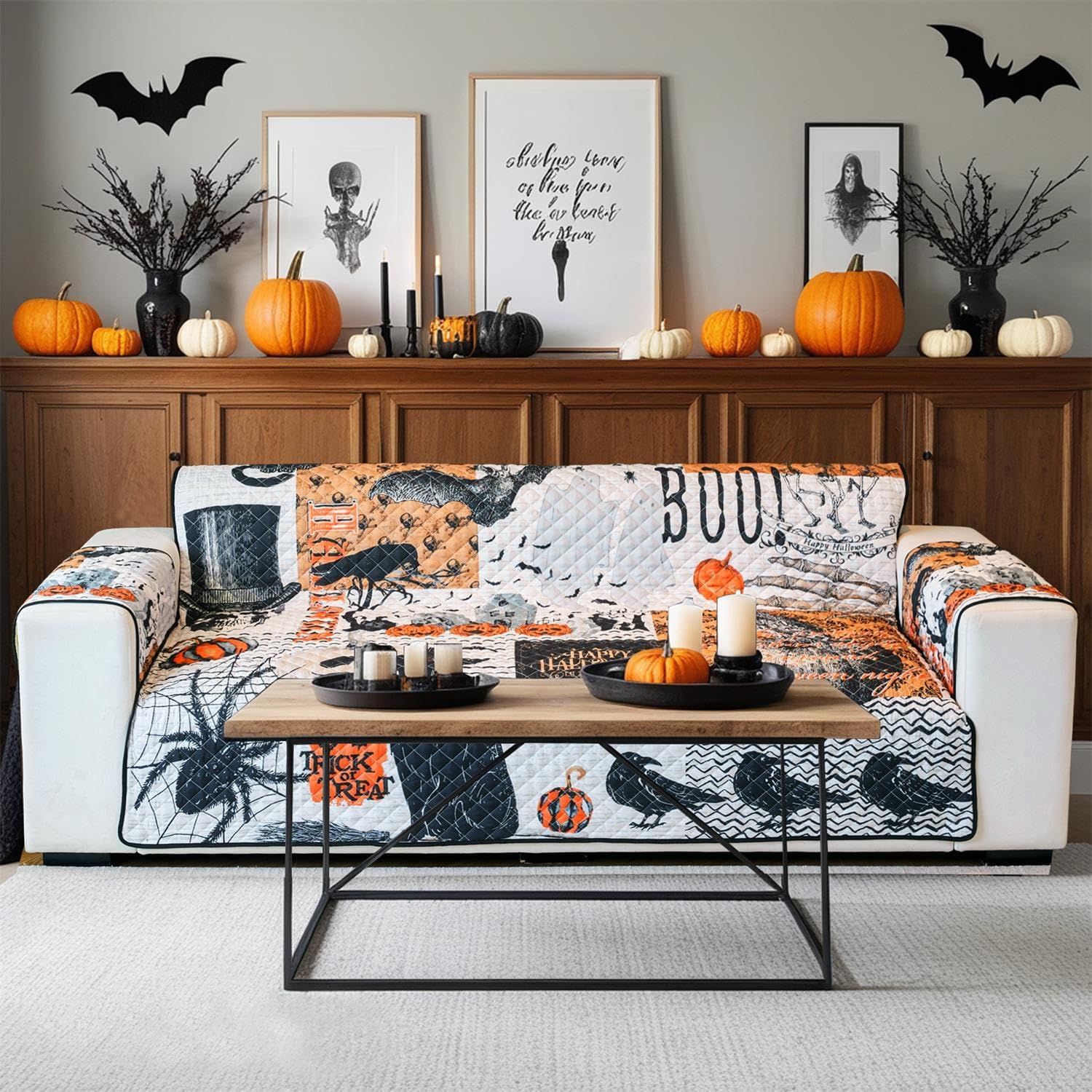 Halloween Sofa Slipcover,Pet Friendly Couch Covers for 3 Cushion Sofa,Washable Sofa Protector for Holiday,Anti-Slip with Elastic Band