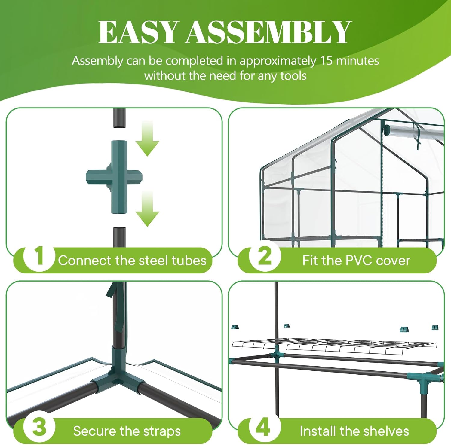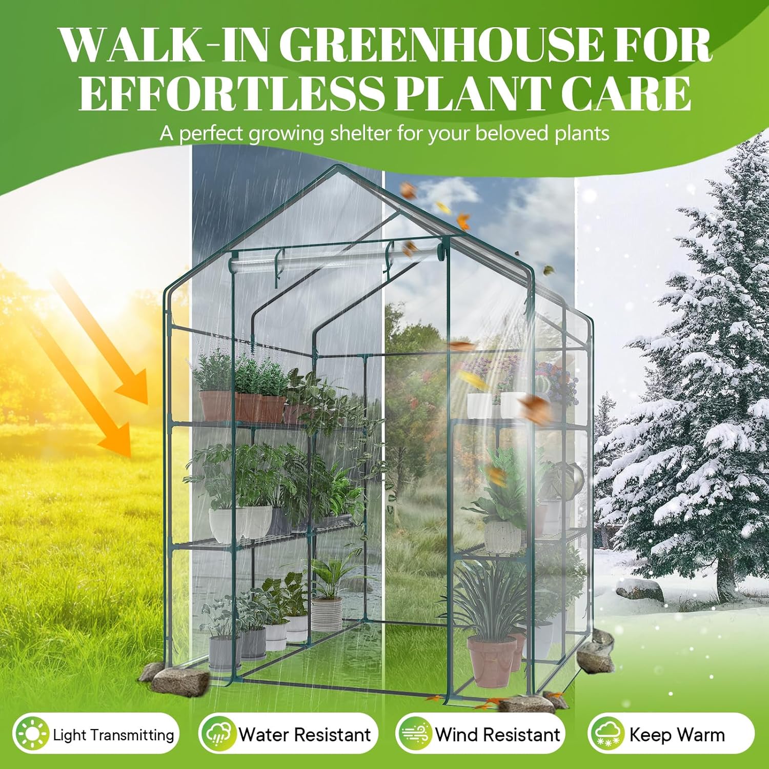 | Item Type Name | 56"×56"×77" Walk-in Green House with 2 Tier 8 Plant Shelves, Durable PVC Cover, Portable Greenhouses for Outdoor Garden, Patio, Porch, Backyard Green houses (Clear) |