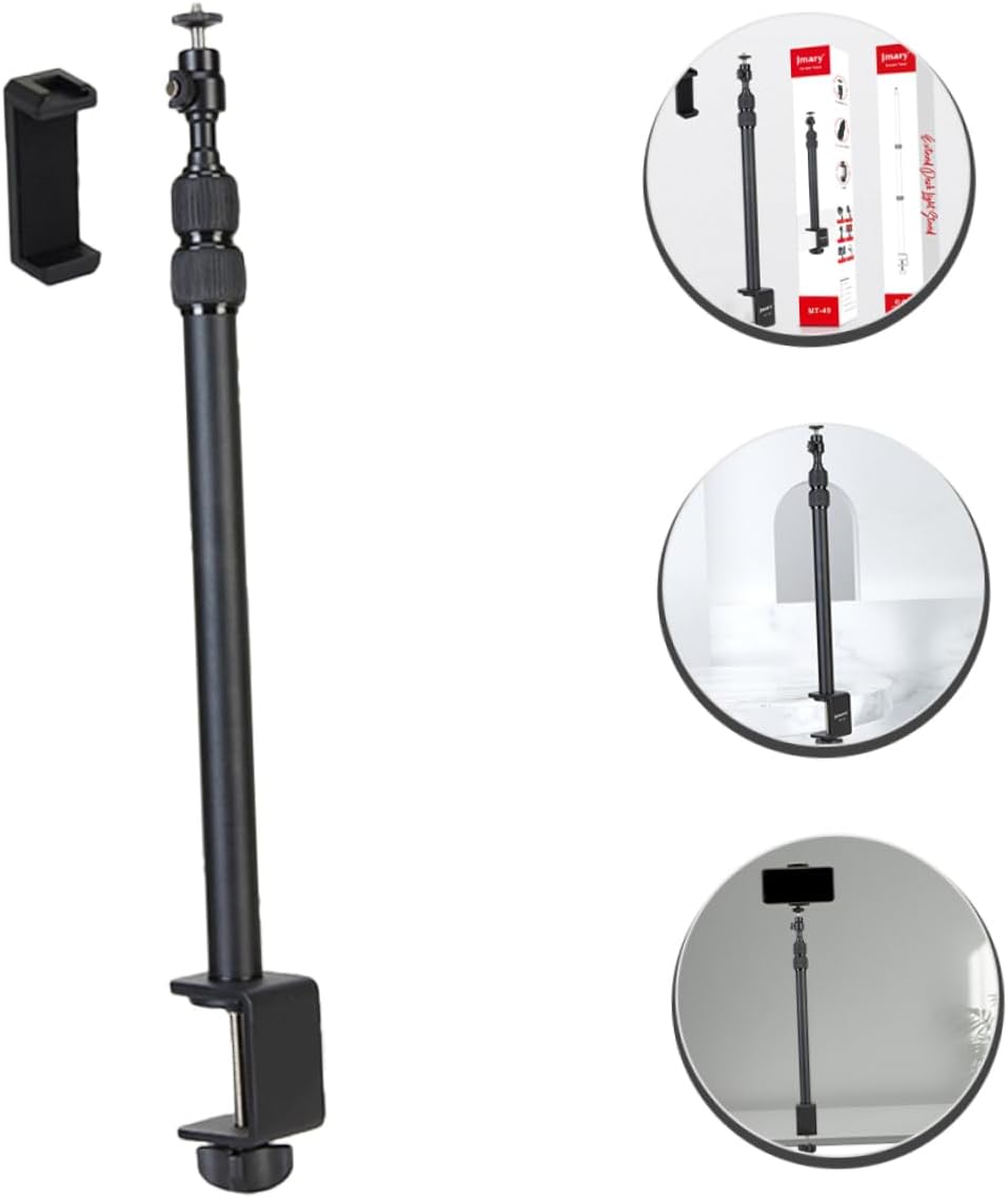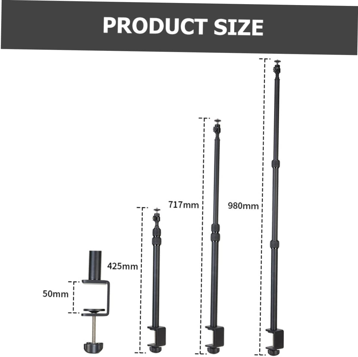 Package Include 1 x camera desk mount Characteristics Minimum height: 385mm Camera Table Stand Storage height: 49mm Ring Light Tabletop Mount -Color:Black Desktop Light Stand Maximum height: 935mm camera desk mount Bearing weight: 1kg/2. Stand for DSLR Camera -Size:49.00X6.00X5.00cm/19.26X2.36X1.97in Tabletop Bracket Stand -Material:Aluminum alloy webcam stand for desk Connector: 1/4 inch desk camera mount - Made of aluminum alloy material, it is durable and sturdy in use webcam mount. - Can be used to mount light panel, phone, camera, ring light, projector, action camera, and etc dslr desk mount. - Fine workmanship, durable and sturdy, not easy to wear or tear, you deserve to have one Camera Desk Mount Stand. - 38.5-93.5cm telescopic pole, providing convenience for versatile photography or webcam stand. - Ball head design, 360 degree rotation, fit for shooting in different angle Adjustable Light Stand.Goods Descriptionwebcam stand This camera desk mount is made of material, which can withstand use.camera desk mount Features the aluminum alloy material, which has high durability, not easy to deform.Desktop Light Stand Fine workmanship, ensures practicality