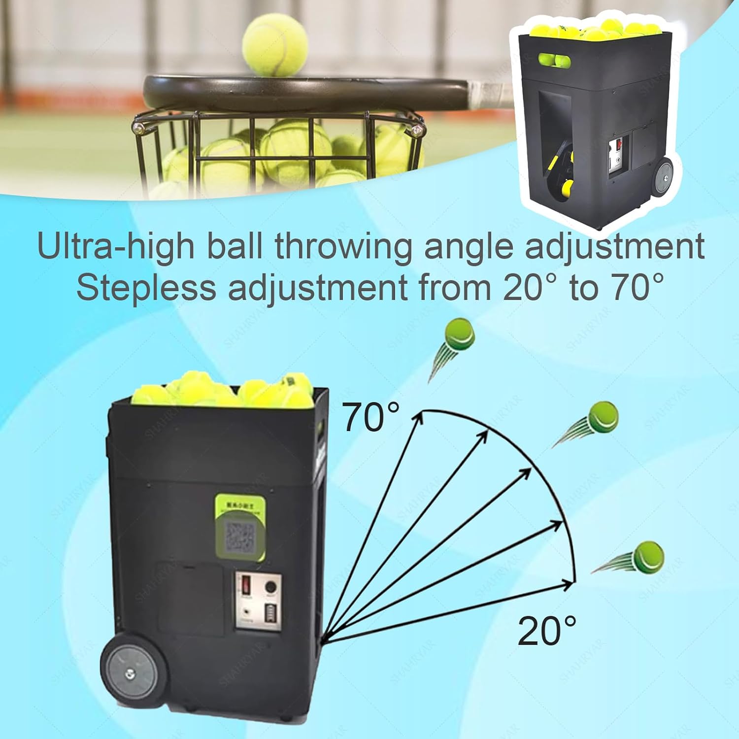 Are you still trouble about not being able to find a partner to practice with, or frustrated that the boring mechanical ball throwing can't improve your skills?This smart tennis ball throwing machine is your personal coach!❤The longest distance of the serve is 16m, the maximum height of the high-pressure ball is about 8m, and the shortest distance of the hand throw is 1.5m.❤The lifting angle, frequency, swing, topspin, and backspin speed range can be continuously adjusted between 10 and 50 km/h, depending on the hardness of the ball.❤This tennis ball throwing machine weighs only 10 kg, is equipped with a tug and a pull rod, and the battery compartment is convenient for access to lithium batteries. It can also be charged inside the machine.❤It is small and easy to carry. Plug and play, you can use it without installation after receiving it. The types of exercises are relatively complete, and you can serve children's balls, orange and green balls.❤【Specifications】Name: Smart tennis ball throwing machineControl mode: remote control/APPRemote control distance: 10-12 metersFrequency: 1.5-10 seconds/ballSpeed: 10-60 kilometers/hourAltitude range: 20-70Battery characteristics: 24V5AHBattery life: 2-4 hoursCharging voltage: 110-240VBall capacity: 50 (not including inner)Weight: 10kgProduct size: 500*360*300mm/19.68*14.17*11.81inPackaging size: 540*310*390mm/21.25*12.20*15.53inGross weight: 13kg❤【Packing list】1 x tennis ball machine❤If you have any questions, please contact us and we will reply you within 24 hours. ❤